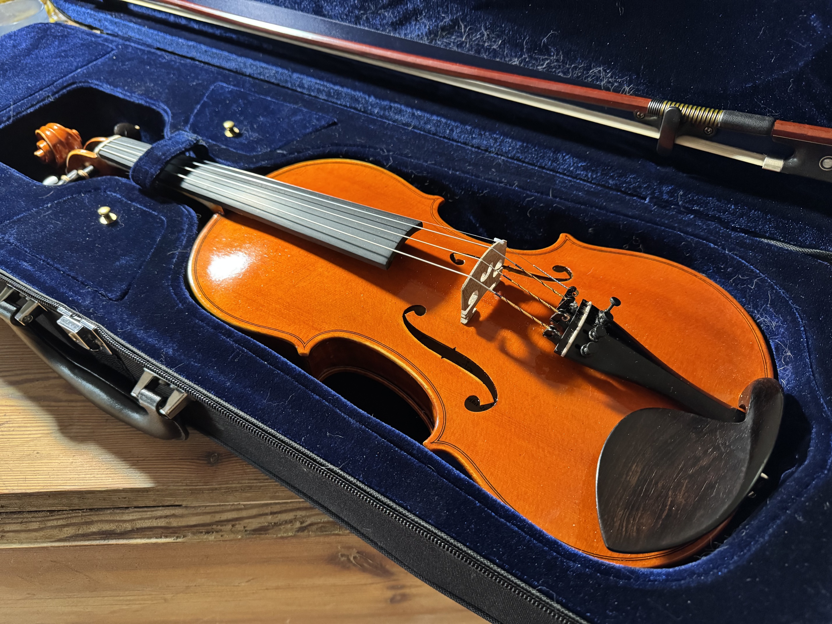 Strängar från Larsen, ljudpinne, stall, hakstöd, stränghållare, stämskruvar från Cremona Tools -helt nytt.